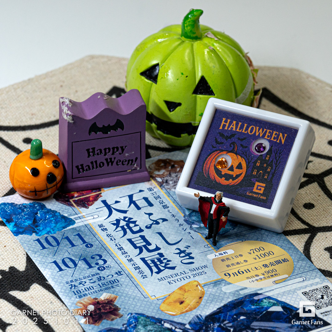 HOME > blog > フォトダイアリー > フォトダイアリー 2025限定ハロウィンセットはいかがですか? 2025年10月11日 2025限定ハロウィンセットはいかがですか? #川口個展のお客様の声から生まれた #京都から限定販売 #石ふしぎ大発見展 #これもガーネット #miniature #ロードライトガーネット Rhodolite Garnet Locality:Mozambique #スペサルティンガーネット Spessartine garnet Locality:Nigeria -フォトダイアリー