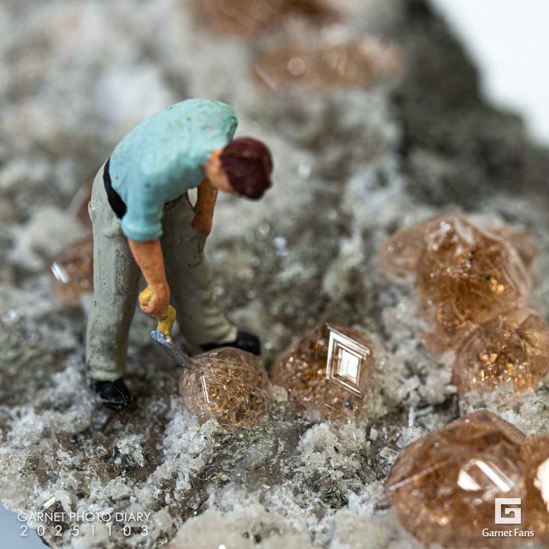 HOME > blog > フォトダイアリー > フォトダイアリー 透明度ある結晶だから、食べると美味ぇど〜〜!! 2025年11月3日 透明度ある結晶だから、食べると美味ぇど〜〜!! #とうめぇど #食べないでぇ〜 #おやぢギャグのせい #これもガーネット #miniature #ヘソナイトガーネット Hessonite Garnet Locality:Jeffrey Mine, Quebec,Canada -フォトダイアリー