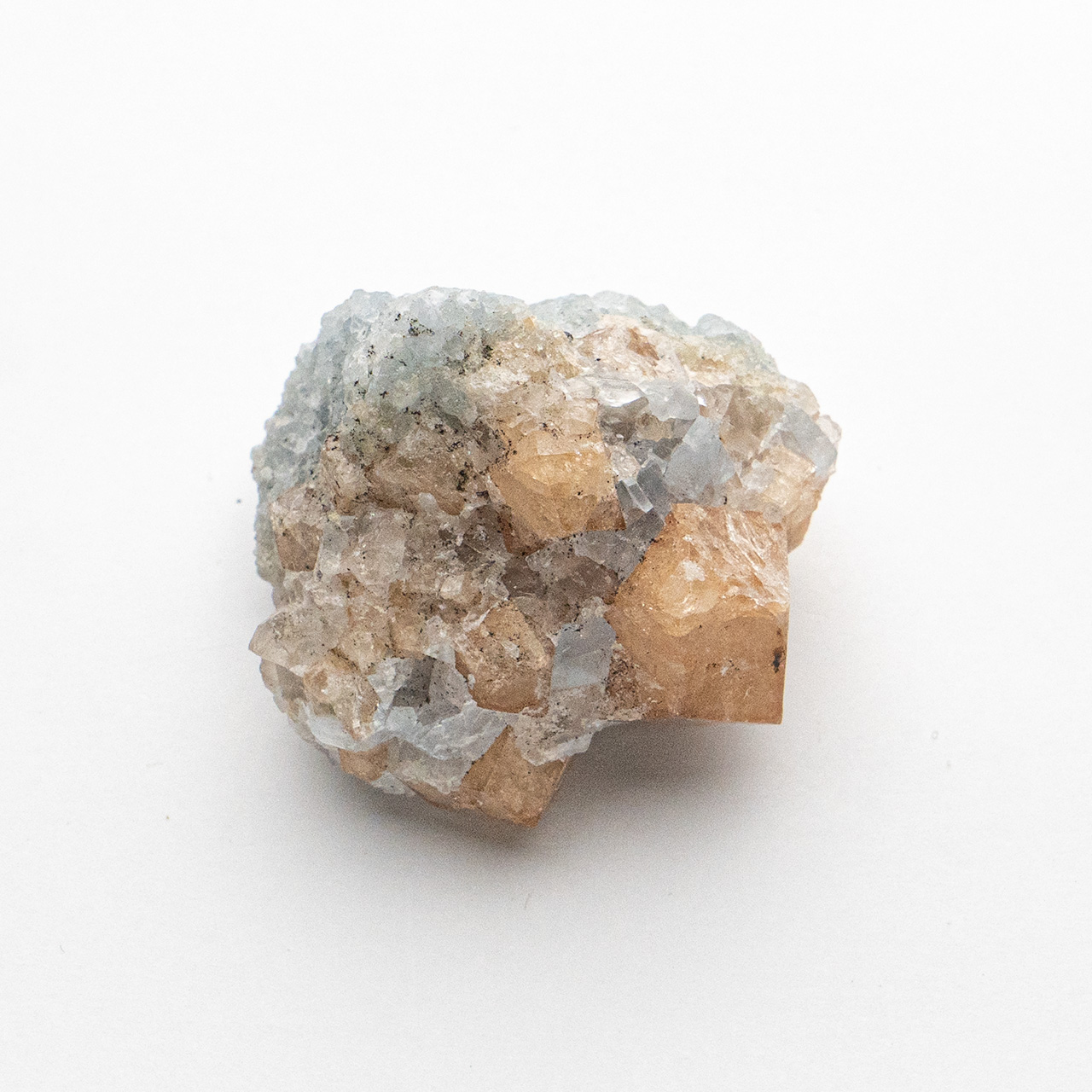 オレンジ色のグロッシュラーガーネットとライトブルーのカルサイト。まず標本のコントラストがとてもいいですね。さらに共生標本とするとあまりみられないというか、他の国ではこのような色合いの組み合わせはみたことがありません。数年前に数個のみ入手したのですが今回のある程度まとまったロットが手に入ったとディーラーより連絡がありそのほとんどを仕入れました。ネットに出品する分に関してはその中でも厳選したものとなります。